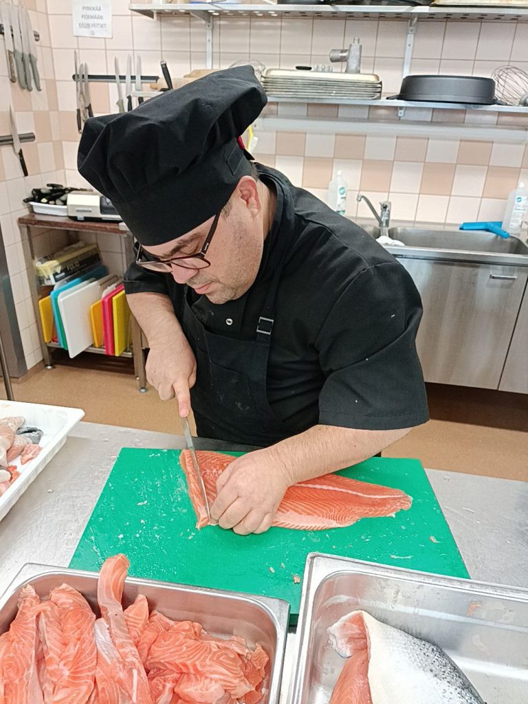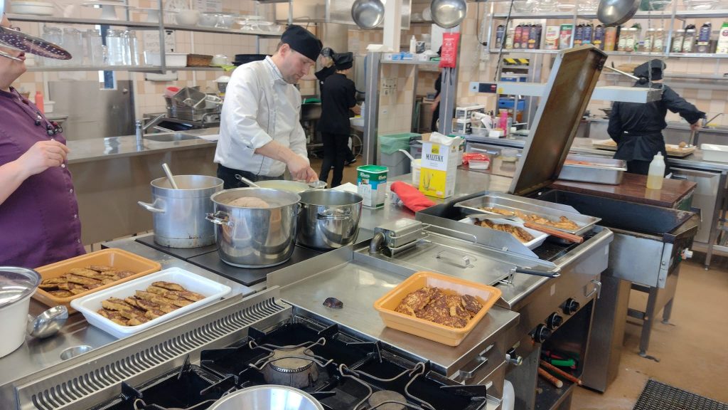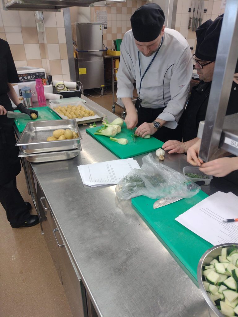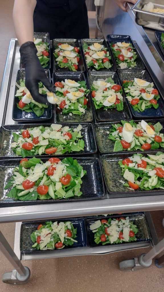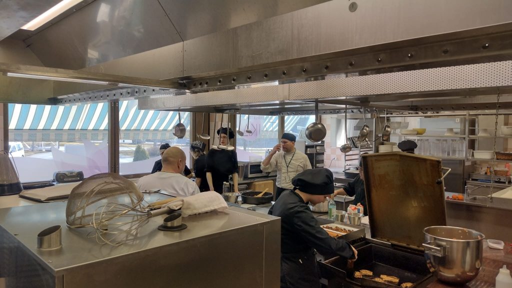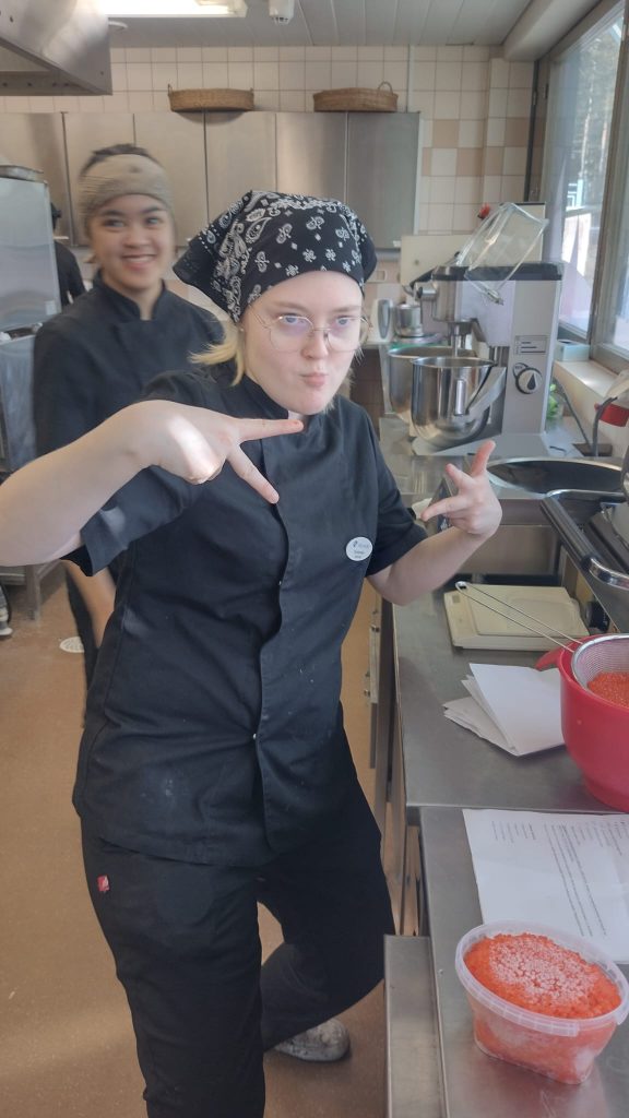 Heute durften wir dem Team des Schulrestaurants Taika über die Schulter schauen und sehen wie die Klasse des ersten Ausbildungsjahres mit Schüler*innen des dritten Ausbildungsjahres eine Kombination aus Buffet und Menü für ca. 30 Gäste hergestellt hat.