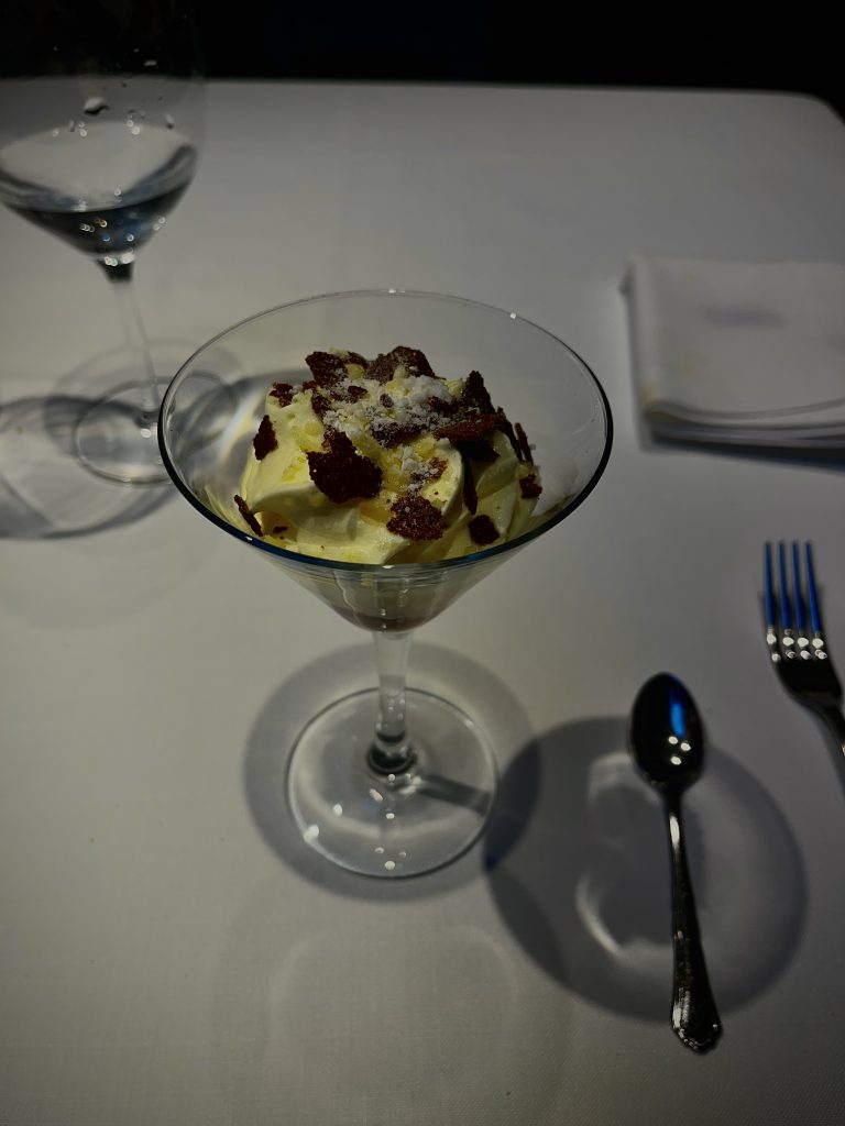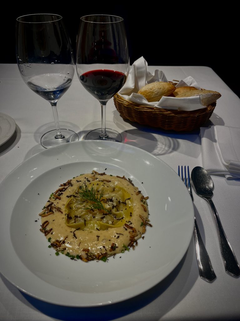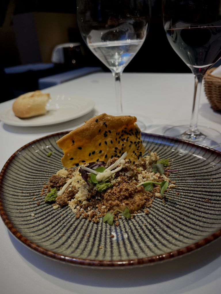 • Mezzaluna mit Carbonara-Schaum und knusprigem Wildreis – Mein absolutes Highlight! Die Mischung aus Carbonara-Schaum und dem Crunch des Wildreises war perfekt.