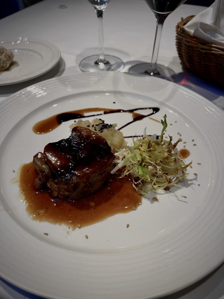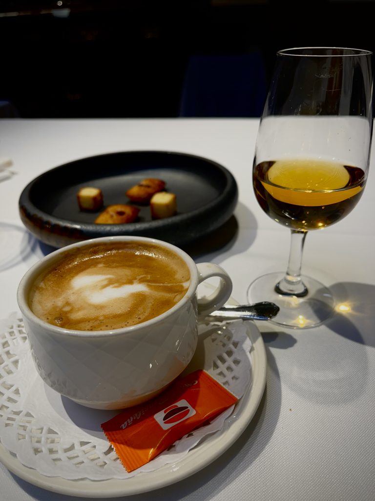 Ich konnte das ganze Menü kostenlos genießen – ein kleines Dankeschön für meine Arbeit im Restaurant. Dazu gab es noch einen sehr leckeren Wein und zum Abschluss einen Kaffee. Am Ende war ich wirklich satt, aber glücklich.
