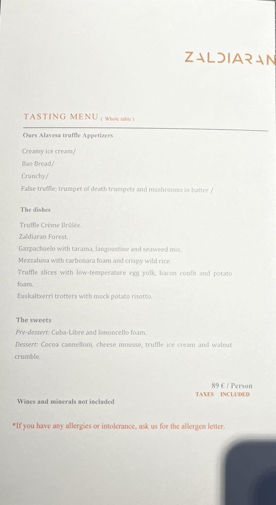 Heute hatte ich die besondere Gelegenheit, das „Menú Degustación“ im Zaldiaran zu probieren – auf Englisch „Tasting Menu“, was auf Deutsch so viel bedeutet wie „Verkostungsmenü“ oder „Probiermenü“. Es war eine unglaubliche Erfahrung, die ich definitiv nicht so schnell vergessen werde.