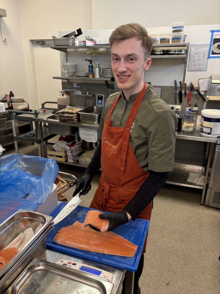 Der erste Eindruck der Küche hat mir sehr imponiert. Jede einzelne Komponente der Speisen wird aus frischen Zutaten und per Hand zubereitet. Der Hauptbestandteil meiner Arbeit an Tag 1 bestand im Schneiden von Gemüse und Kräutern, als auch der Herstellung von super einfachen, aber leckeren Süßkartoffelchips. Der am besten zu Island passende Part war allerdings der Fisch. Kiloweise frischer Fisch gehen am Tag über den Küchenpass. Das Portionieren des Fisches fiel damit auch in meinen Aufgabenbereich.