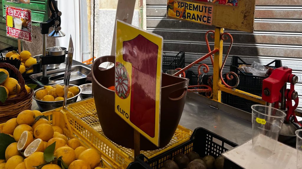 Wir probierten uns durch alles durch, tranken frisch gepressten Orangensaft und gönnten uns einen 3-€-Aperol. Laurenz wagte sich sogar an die “offene Oberschenkel-Limonade” – eine Zitronenlimonade mit Backpulver, die sehr lustig zu trinken war.