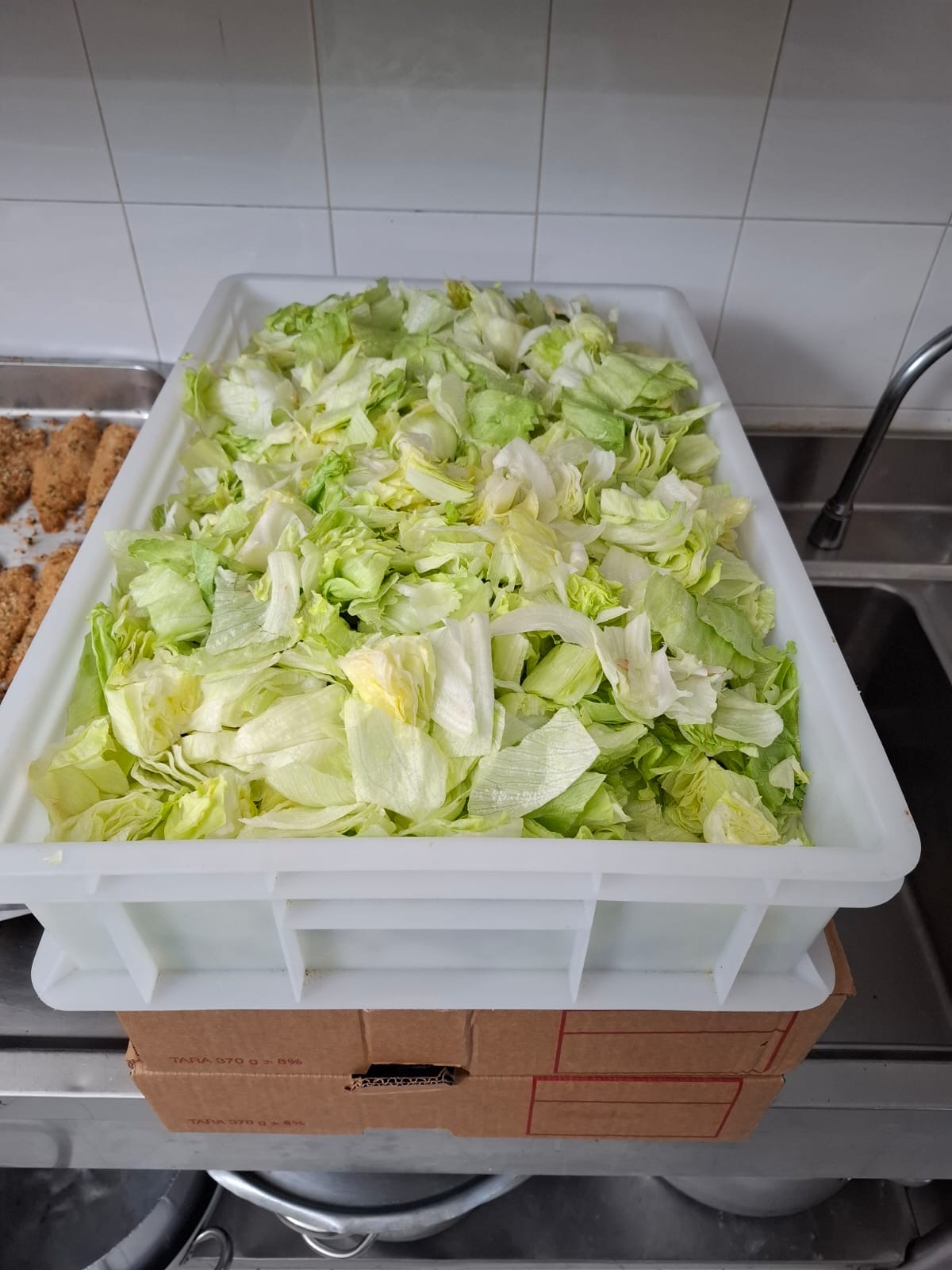 Am Abend begann meine Schicht in der Küche. Ich habe Eisbergsalat geschnitten und in einen Behälter gefüllt. Danach habe ich Teller mit den Portionen für das Drei Gänge Menü vorbereitet. Zum Abschluss des Tages habe ich die Küchenarbeitsplätze aufgeräumt und meinen Feierabend genossen.