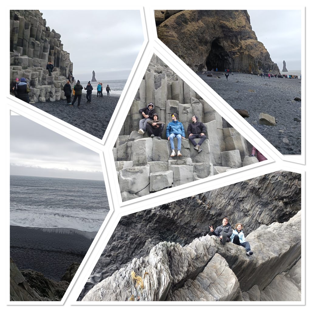 Ein weiteres Highlight unserer Reise war der berühmte schwarze Strand von Reynisfjara. Der Kontrast zwischen dem schwarzen Vulkansand und den schroffen Basaltsäulen ist einfach atemberaubend. Wir verbrachten einige Zeit damit die Wellen zu beobachten und die einzigartige Küstenlinie zu erkunden. Die Kraft des Atlantiks war spürbar und wir waren fasziniert von der Schönheit und Wildheit dieses Ortes. Ein paar von uns kletterten auch auf die Felsen die dort waren.