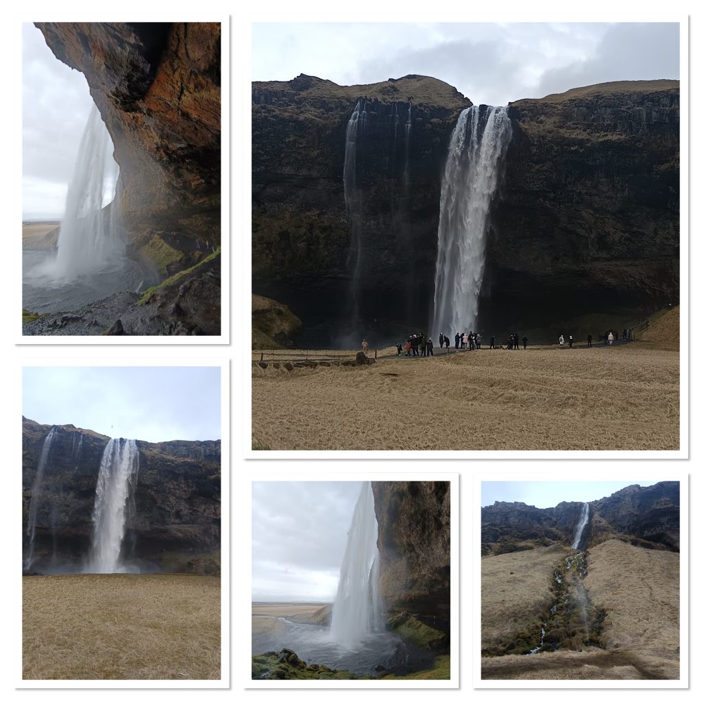 Zum Abschluss unseres Abenteuers besuchten wir den Wasserfall Seljalandsfoss. Dieser Wasserfall ist besonders, da man hinter ihm hindurchgehen kann. Es war ein unvergessliches Erlebnis das Wasser von hinten zu sehen und die Natur aus einer ganz neuen Perspektive zu erleben. Der Weg hinter den Wasserfall war etwas rutschig, aber die Aussicht war es wert. Wir machten viele Fotos und genossen den Moment in vollen Zügen.
