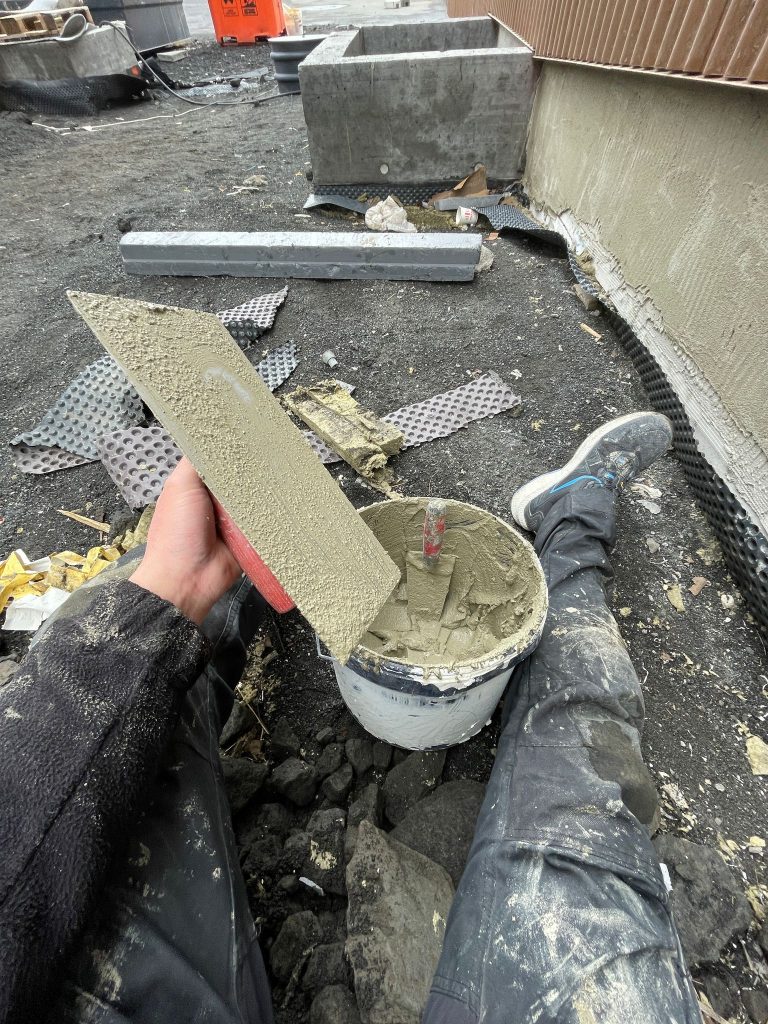 Moritz hat in dieser Zeit draußen mit einem Kollegen die Fassade verputzt.