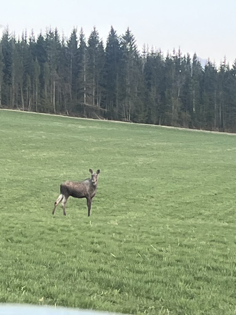 In den Abendstunden sieht man oft Elche, welche aus dem Wald auf die Wiesen wechseln, um dort zu äsen.