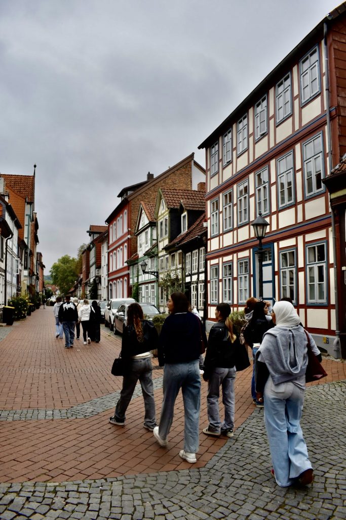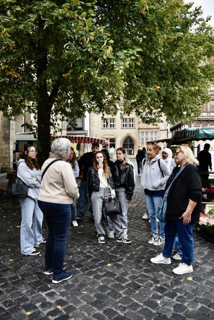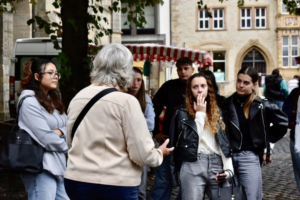 Der Besuch begann mit einem herzlichen Empfang durch unsere Schulleiterin Frau Rahlves. Ein besonderes Highlight war die Stadtführung von Frau Braemer, die tatkräftig von unserer Schülerin Chiara Collaviti unterstützt wurde. Chiara konnte auf Italienisch aus erster Hand berichten, wie es ist, als Italienerin in Hildesheim zu leben und hier zur Schule zu gehen.