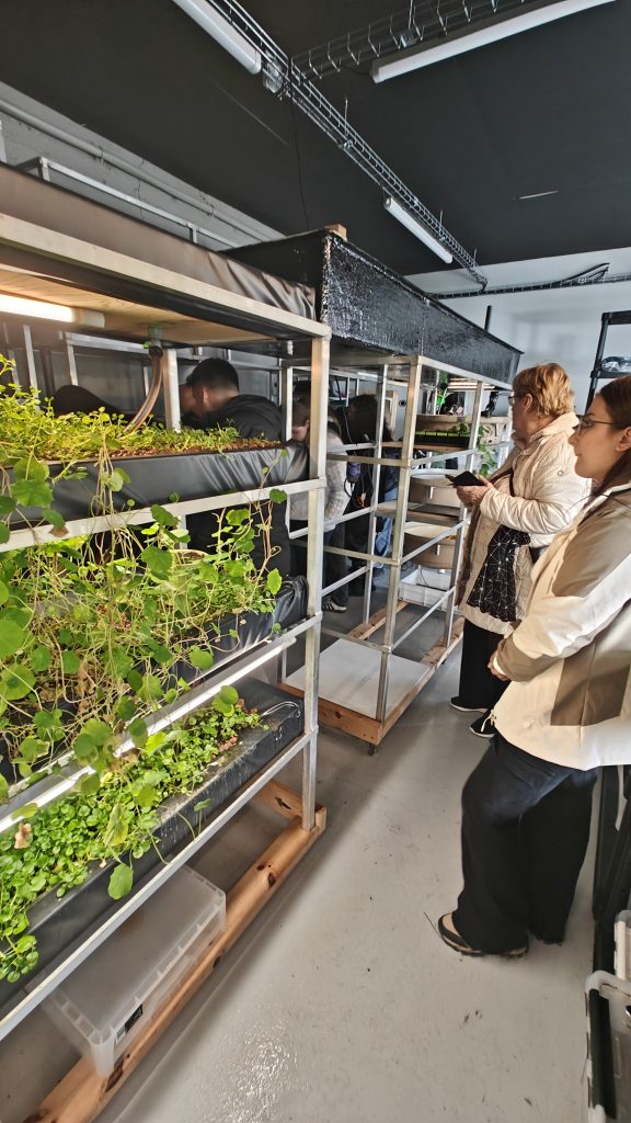 Amber Monroe, Inhaberin von ISPONICA in Hofsos, erläuterte uns Ihre Arbeit vor Ort und die Vorteile einer fast geschlossenen Produktionskette.