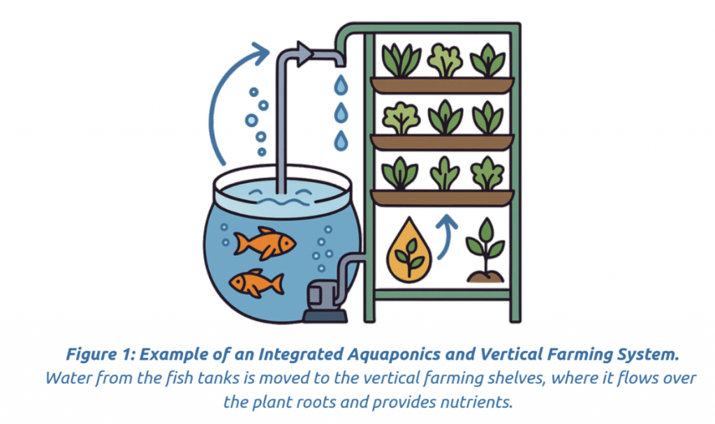 Aquaponische Systeme verbinden Fischzucht (Aquakultur) mit Pflanzenanbau in Wasser (Hydroponik). Dabei entsteht ein geschlossener Kreislauf: Die Fische produzieren Nährstoffe durch ihre Ausscheidungen, die von Bakterien in für Pflanzen verwertbare Stoffe umgewandelt werden. Die Pflanzen nehmen diese Nährstoffe auf und reinigen so gleichzeitig das Wasser, das zurück zu den Fischen fließt.