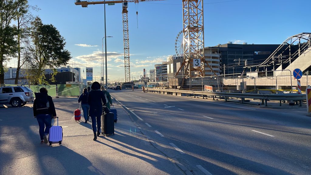Abenteuerlich ging es dann auch am Flughafen weiter. Wir hatten uns vorgenommen Estland ganz nachhaltig mit dem Bus zu erkunden und schon die passende Buslinie herausgesucht! Leider sind wir sehr an das deutsche System, einfach einsteigen, egal wie voll, gewöhnt. In Estland sind dagegen am Sonntag alle Busse ausgebucht und müssen vorher reserviert werden… Diese Information fehlte uns bis zu diesem Zeitpunkt. Zum Glück waren wir ab Tallin aber schon nicht mehr alleine unterwegs. Unsere Kolleginnen von der Alice-Salomon-Schule in Hannover und der Berufsbildenden Schule 2 in Hannover und der Berufsbildenden Schule in Burgdorf teilten das Schicksal gemeinsam mit uns. Glücklicherweise sind die Estländer*innen unglaublich freundliche Menschen und haben uns gleich verraten, dass man entweder ein Auto buchen kann, was mit der App viel günstiger ist, als im Flughafen, oder man einfach den Zug nehmen kann. Wir entschieden uns für die günstigere und nachhaltigere Variante, denn das hatten wir uns ja bereits vorgenommen und machten einen erfrischenden! Spaziergang bei bestem Wetter zum Zug.