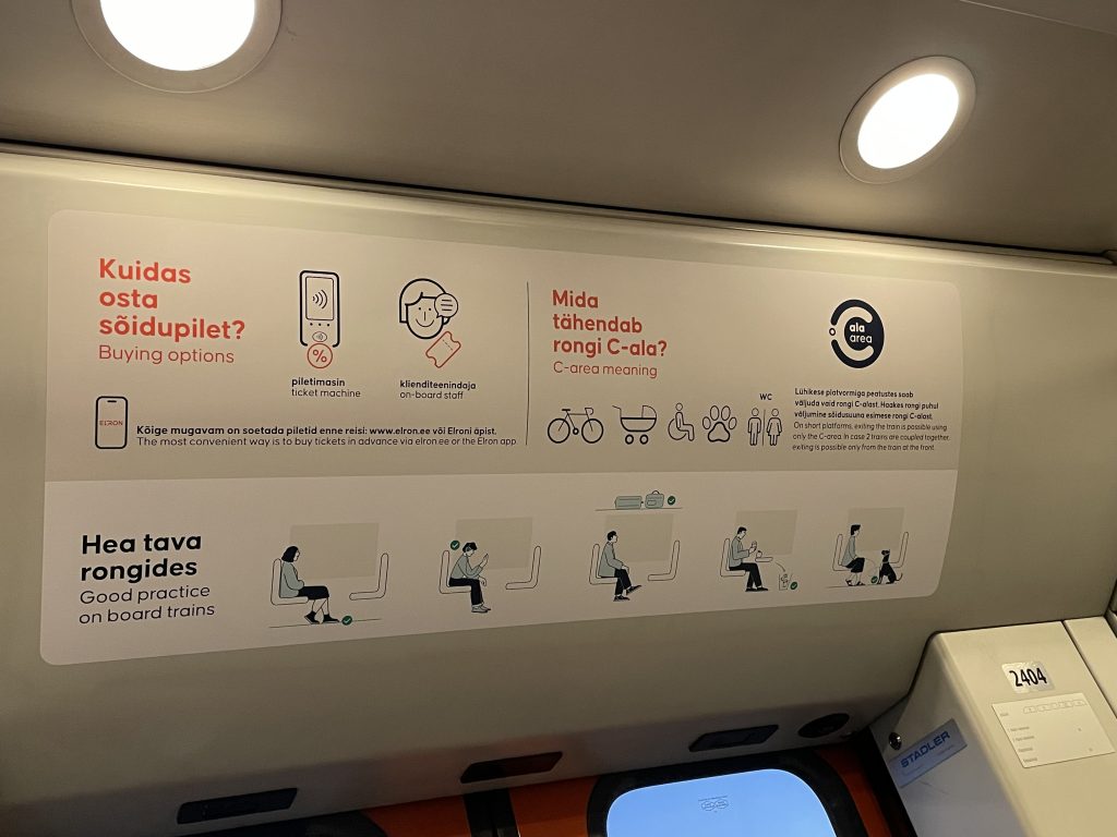 Hier vergewisserten wir uns, dass man die Tickets auch im Zug buchen kann… und daraufhin erlebten wir gleich unser nächstes Abenteuer. Bankkarte an den Ticketautomaten halten und „piep“… Es kommt aber kein Ticket raus… also nochmal… „pieppieppiep“… wieder nichts, außer ratlose Blicke. Auch hier aber sehr nette Estländer*innen, die mittlerweile wahrscheinlich schon etwas Mitleid mit uns Tourist*innen hatten. Estland ist einfach unglaublich digital. Das Ticket wurde bereits mit dem ersten „piep“ auf der Bankkarte gespeichert. Beim zweiten „pieppieppiep“ war schon ein Ticket verbucht, sodass wir eigentlich ganz Idiotensicher ein Ticket gekauft hatten. Als dann die Schaffnerin kam, stieg die Nervosität. Sie las unsere Bankkarten ein und nickte zufrieden. Erste Prüfung bestanden!