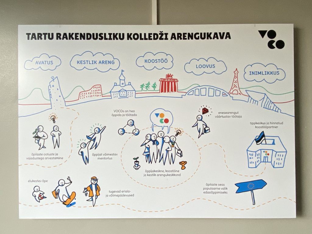 Am Mittwoch, den 01.10.2025 haben wir eine weitere Zweigstelle der VOCO in Tartu besucht und wurden tiefer in die Arbeit an Berufsschulen eingeführt. Wir wurden freundlich von Ismail Mirzojev empfangen und durch die Werkstätten und Unterrichtsräume geführt. Es wird deutlich, dass die Estländer*innen sehr stolz auf ihre Berufsschule sind und ihre enge Beziehung zu den Betrieben. Tatsächlich nimmt die Industrie und das Handwerk die Zusammenarbeit sehr ernst und stellt sowohl Lernequipment, als auch Expert*innen, die Kurse in der Schule anbieten und an denen Lehrkräfte teilnehmen können. Dadurch bleiben die Lehrkräfte jederzeit auf dem aktuellsten technischen Stand und leben die engen Verbindungen in die Wirtschaft. Auch reagieren sie aktuell und flexibel auf neue Technologien und stellen ihre Lehrpläne auf die neuen Anforderungen um. So wird bereits Wasserstoff als Antriebsmittel für Autos und die zugehörige Technik unterrichtet, bevor diese auf dem estnischen Markt sind, damit die Lernenden auf zukünftige Erfordernisse vorbereitet sind und innovativ nach ihrem Schulabschluss arbeiten können. Dies ist auch dem Umstand geschuldet, dass kein duales System besteht und die Betriebe darauf angewiesen sind, dass die Schulen bestmöglich für sie ausbilden, um ein Training in Job nach dem Abschluss zu vermeiden und Arbeitskräfte direkt einsetzen zu können. Besonders gewinnbringend fanden wir, dass die alten, noch aus der Sowjetunion stammenden Gebäude mit kreativen Lösungen modernisiert wurden. So wurden beispielsweise Decken einfach mit Schallhemmenden Platten abgehangen oder einfache Klassenräume mit berufsbezogenem Mobiliar ausgestattet. Beispielsweise hatten die Logistikklassenräme Schwerlastregale anstelle von den sonst vorhandenen Holzregalen zum Aufbewahren von Lernmaterial. So war jeder Person der Berufsbezug mit geringem Aufwand klar. Die moderne Technik und Ausstattung wird aus mehreren Quellen finanziert. Zum Einen ist die Kommune, zum Anderen sind die Betriebe zuständig und über europäische Projekte werden beispielsweise VR-Brillen mit Lackieranlagen finanziert. Oftmals wird aber auch an Abfallprodukten der Industrie und dem Handwerk gearbeitet. Beispielsweise werden defekte Motoren repariert oder alte Lampen für Schaltkreise verwendet. Auch können sich Kund*innen beispielsweise ihr Auto von den Schüler*innen reparieren lassen und der schuleigene Fuhrpark wird durch aussortierte und von Lernenden reparierte Fahrzeuge aufgebaut und gewartet. Beim Kickertisch und den Tischtennisplatten in den Werkräumen wird auch klar, dass es nicht nur ums Lernen sondern auch gemeinsame Arbeit zu leben geht. Das Schulprogramm hängt überall für Lernende sehr einfach aufbereitet im Schulgebäude und schafft eine weitere Identifikation mit den Werten und Zielen der Schule.