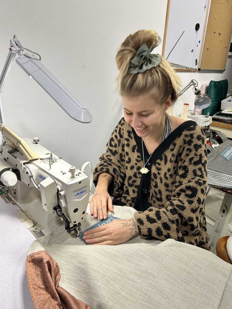 Unsere erste Arbeitswoche in Palermo liegt hinter uns. Wir haben die Werkstatt bei verschiedenen Näharbeiten unterstützt, uns mit dem Laden vertraut gemacht und so langsam ein Gefühl für den italienischen Arbeitsalltag bekommen. Der Laden ist in zwei Teile aufgeteilt, vorne befindet sich ein sehr stilvoll eingerichteter großer Raum indem die Chefin die Kunden berät. Der Laden scheint sehr gut zu laufen, da wir hinten in der Werkstatt viele laute Stimmen und die Tür klingen hören. Im hinteren Teil des Ladens befindet sich eine kleine Werkstatt, die bis unter die Decke voll mit Möbelstücken und Stoffen ist. Unser Arbeitsplatz ist dazwischen an den Nähmaschinen.