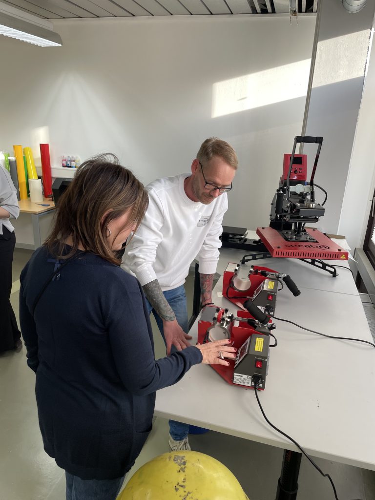 Ein besonderes Highlight war die Vorstellung unseres Maker Space. Unsere Gäste konnten dort auch selbst aktiv werden, verschiedene digitale Werkzeuge und Technologien ausprobieren und sogar ein kleines Giveaway gestalten und als Andenken mitnehmen. Dieser praktische Einblick zeigte, wie kreatives Arbeiten, digitale Kompetenzen und berufliche Bildung an unserer Schule miteinander verknüpft werden.