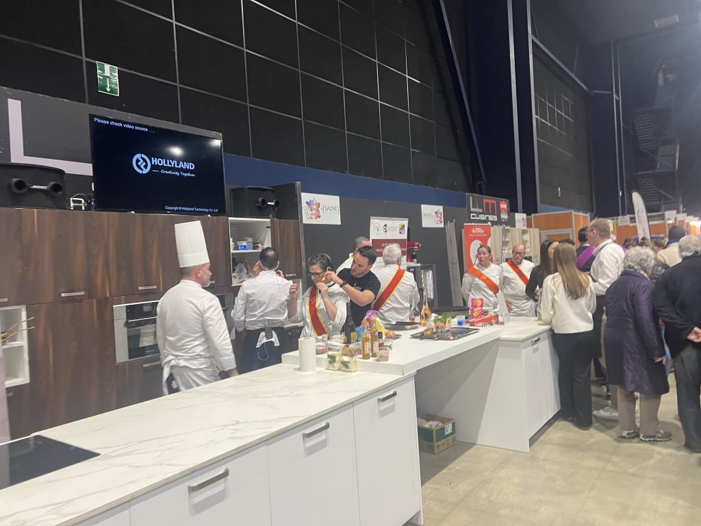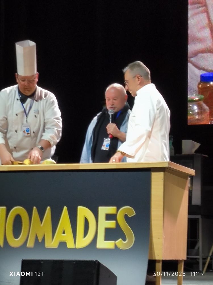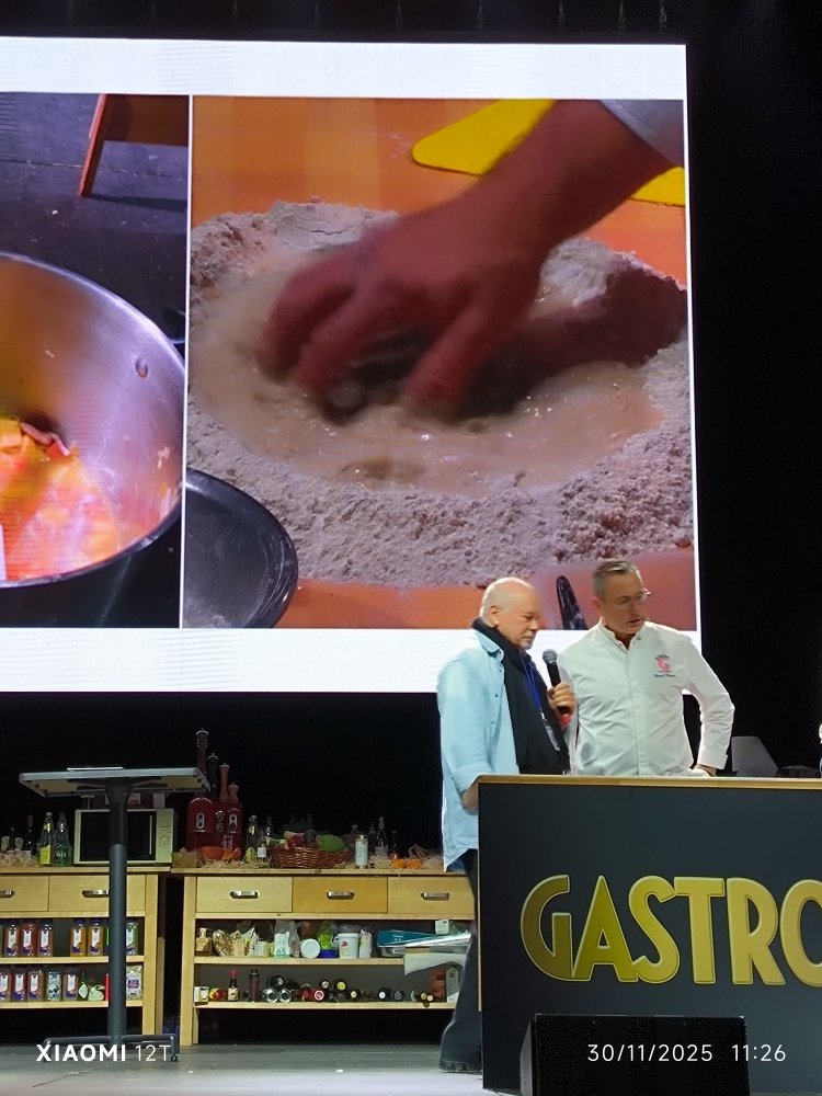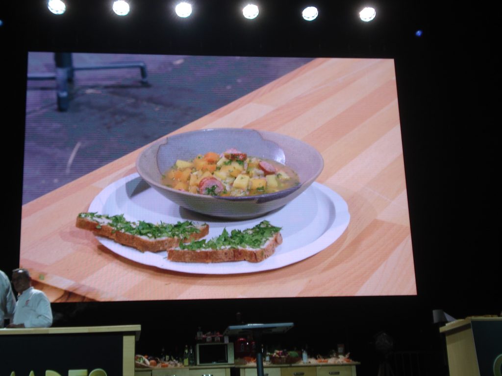 Am 30. November waren wir dann auf der Gastronomades 2025 zu Gast. Dort hatten wir um 11:15 Uhr eine Liveshow. Herr Althaus präsentiert die Zubereitung einer Steckrüben-Suppe. Parallel dazu wurde von Herr Schubert die Zubereitung und das Abflämmen eines Gersterbrots gezeigt. Im Anschluss konnten wir uns noch auf der Messe umschauen.