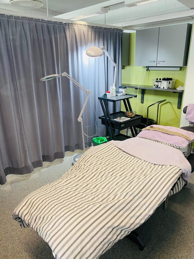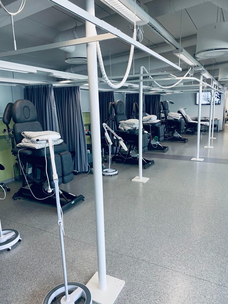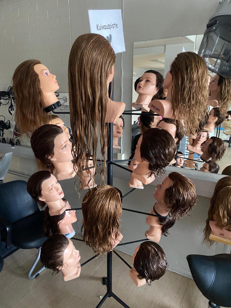 Es war faszinierend zu beobachten mit wie viel Präzision und Kreativität hier gearbeitet wird. Besonders bemerkenswert: eine Schülerin aus dem Kosmetikbereich gehört aktuell zu den besten acht Kosmetikerinnen in ganz Finnland. Sie nimmt regelmäßig an Wettbewerben und Meisterschaften teil – Eine wirklich beeindruckende Leistung!