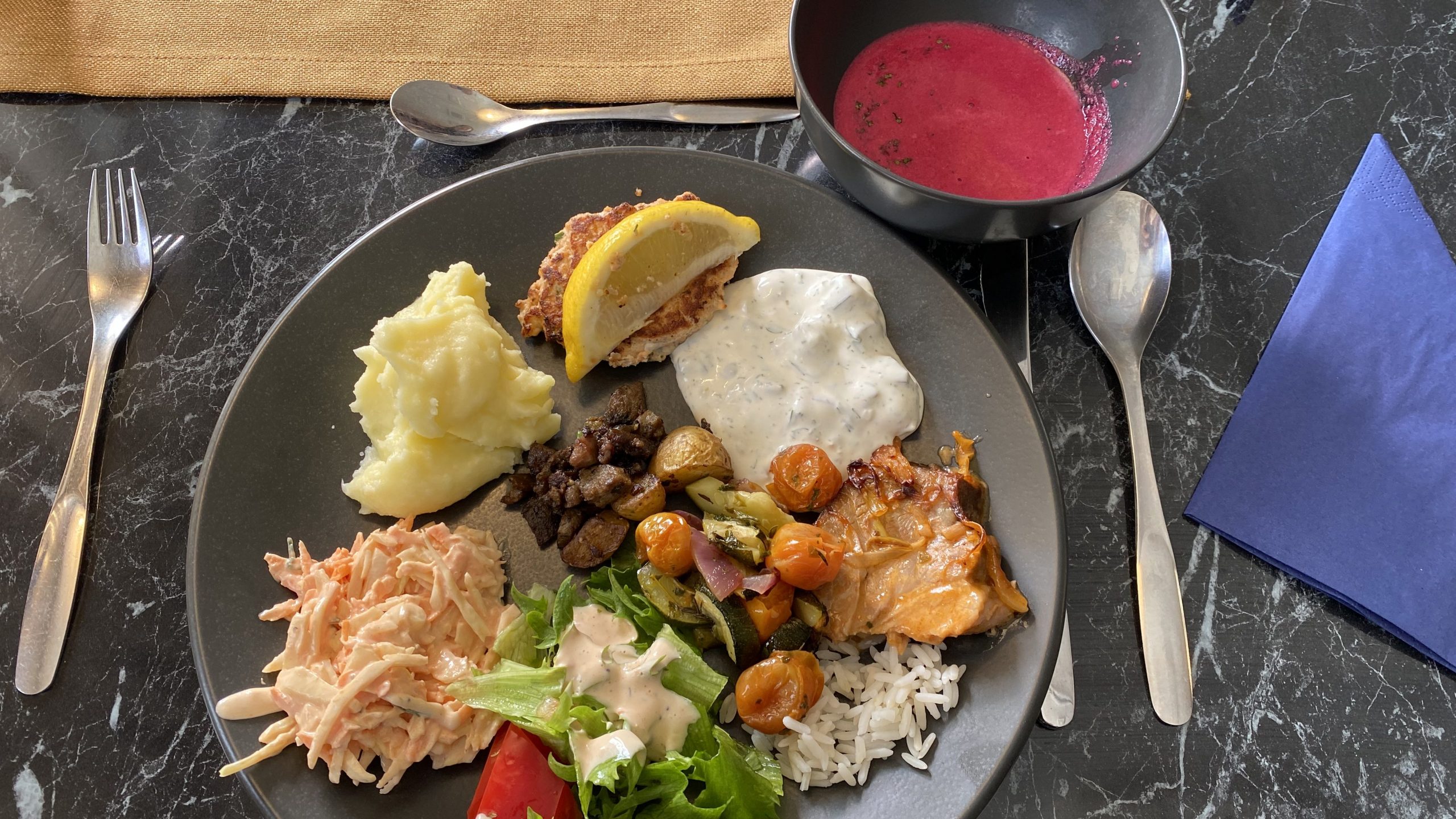 Ein besonderes Highlight war auch, dass Adriyan seinen ersten Tag sehr erfolgreich gemeistert hat. Gemeinsam mit seiner Partnerin Charlotta war er selbstverantwortlich für das Salatbuffet und insbesondere den Coleslaw zuständig. Sie planten, bereiteten zu und richteten alles eigenständig an. Spoiler: Es hat wirklich sehr gut geschmeckt!