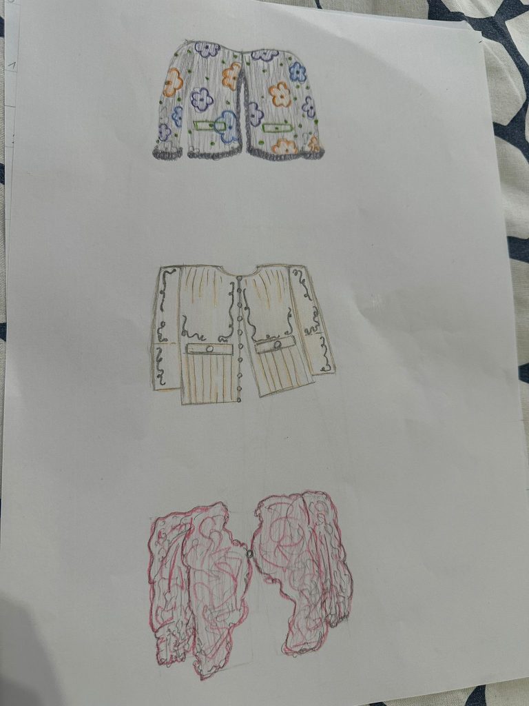 Dort arbeiteten wir gemeinsam mit den italienischen Schülern an unserem Designprojekt. Unsere Aufgabe ist es, aus alter Jeans eine Tasche zu gestalten. Zuerst haben wir unsere Ideen auf Papier skizziert. Dabei haben wir uns Gedanken über die Form, die Größe und besondere Details gemacht. Besonders schön war die kreative Atmosphäre alle haben konzentriert gearbeitet und sich gegenseitig geholfen. Durch dieses Projekt lernen wir nicht nur handwerkliche Fähigkeiten, sondern auch, wie nachhaltig Mode sein kann. Alte Materialien bekommen ein neues Leben.
