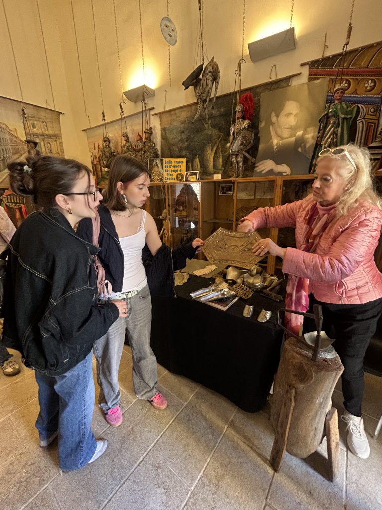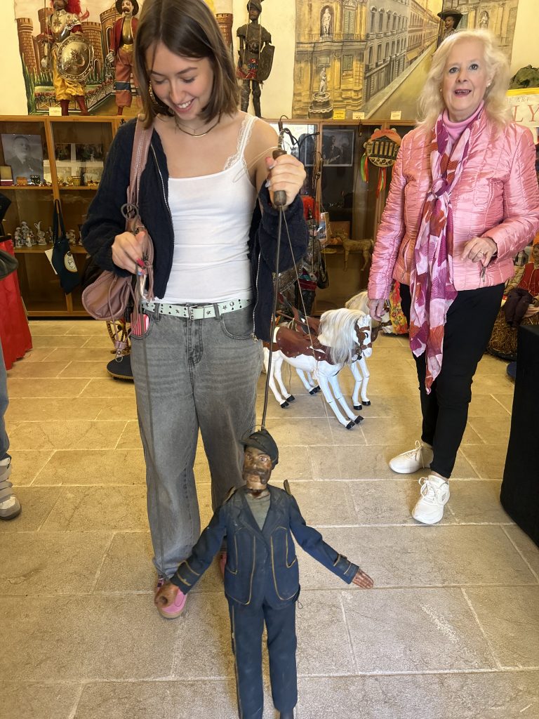 Uns wurde gezeigt wie Menschen früher in Sizilien gearbeitet und gelebt haben. Besonders interessant waren die traditionellen sizilianischen Puppen. Uns wurde erklärt, wie sie hergestellt werden und welche Geschichten hinter ihnen stecken. Am Ende durften wir sogar selbst versuchen, die Puppen zu bewegen und sie gegeneinander kämpfen zu lassen.