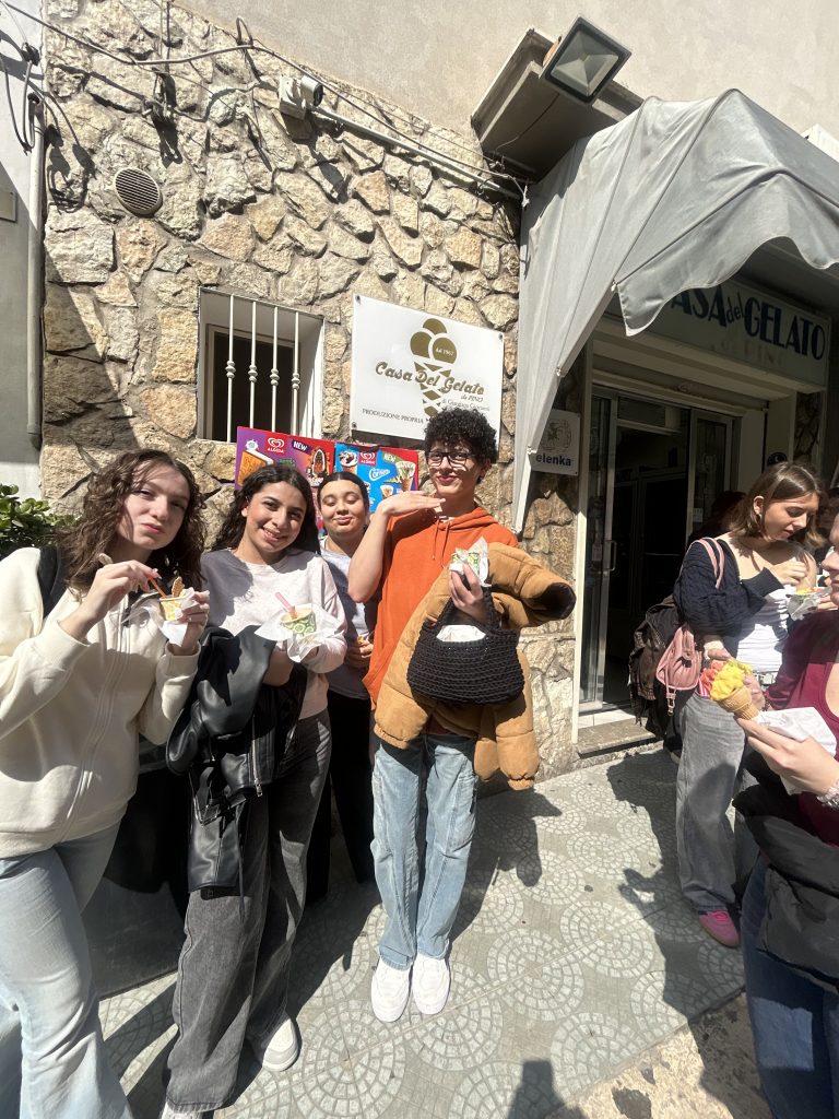 Nachdem wir im Real Cantina Borbonica – Museo delle Tradizioni Storiche, Culturali e Agricole und dem Besuch in der Kirche fertig waren, haben wir gemeinsam mit den italienischen Schülern eine kleine Pause gemacht. Zusammen sind wir in die Stadt gegangen und haben uns ein Eis geholt. Es war eine schöne Gelegenheit, sich auszuruhen, zu reden und einfach den Moment zu genießen