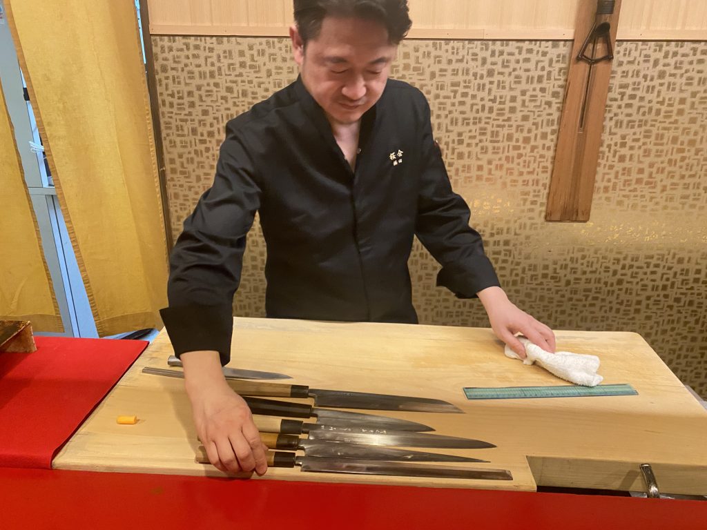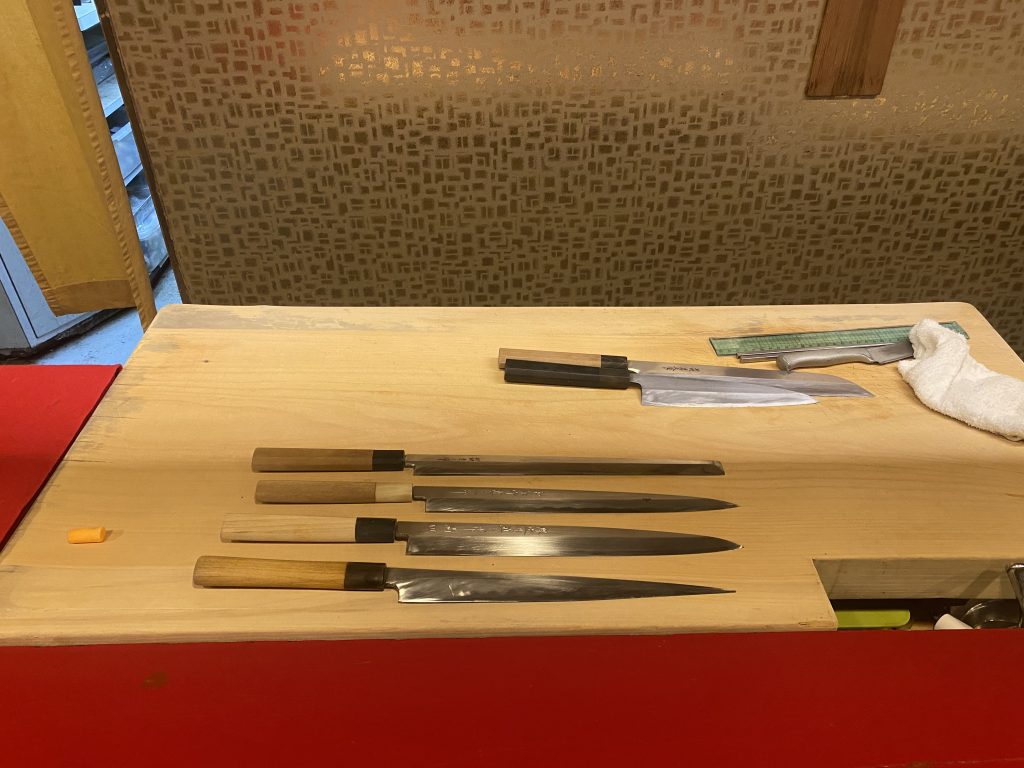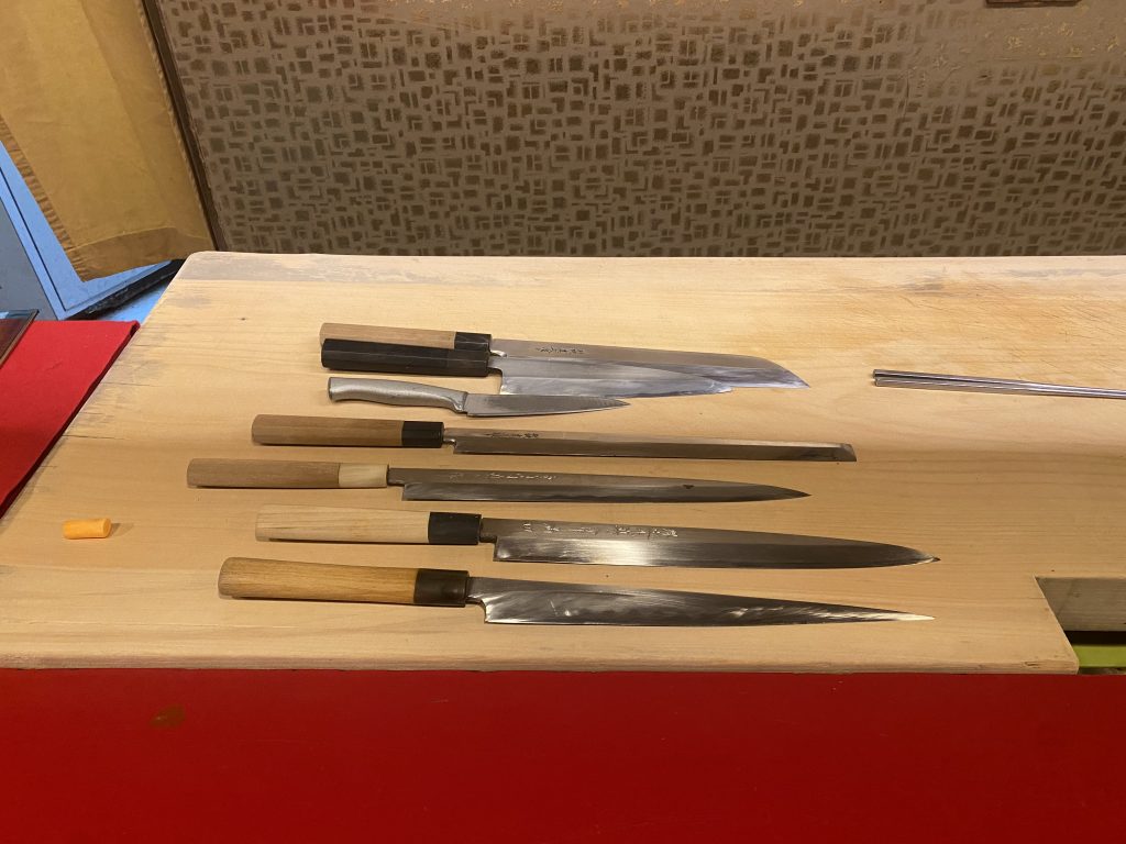 Da wir im letzten Jahr bereits eine Einführung in das Schärfen der Messer erhalten haben, wurden wir in diesem Jahr in die besondere Vielfalt der Messer mit ihren einzigartigen Verwendungszwecken eingeführt. Für Fleisch, Fisch und Gemüse gibt es auch neben den verschiedenen Größen verschieden geformte Messer und Formen. Die Werkzeuge werden sehr gut gepflegt und ein Leben lang geschärft, sodass sie über die Jahre an Länge, aber nie an Schärfe verlieren.