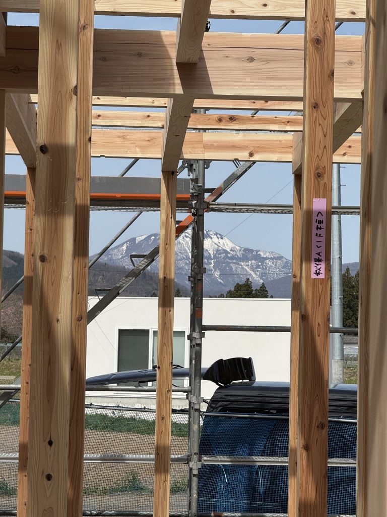 Toychi, der japanische Tischler, der während unseres Aufenthalts in Japan für uns zuständig ist, sammelt uns um 7:00 Uhr beim Seven/Eleven (Eine Supermarktkette, die 24/7 geöffnet hat) ein, und schon beginnt unsere Reise ins Unbekannte. Vorbei an blühenden Kirschbäumen, Gebirgsketten und reißenden Flüssen führt uns der Weg hin zu unserem Arbeitsplatz für die kommenden zehn Stunden. Ein Neubau in traditioneller Bauweise. Das Fundament wurde bereits vor einiger Zeit gegossen und ist ausgehärtet, das Gerüst steht bereits.